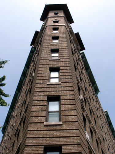 Constructed between June 10, 1910 and July 23, 1911, the Grinnell sits on a triangular plot of land in Washington Heights where the family of George Blake Grinnell once pastured a few cows when the surrounding area was known as Audubon Park. “The Park,” a bucolic suburb that grew out of John James Audubon’s farm Minnie’s Land, remained suburban into the 20th Century, but became prime property for real estate development when the subway opened at 157th Street in November 1904. Six years later, when the extended Riverside Drive opened, its path crossing Audubon Park, the Grinnell heirs, led by eldest son George Bird Grinnell, sold their property. Developers quickly snapped it up and between 1909 and 1911 erected a group of Beaux Arts apartment houses. Noting the effects of rapid transit, newspaper commentators dubbed the two-year period Audubon Park’s “rapid transformation.”